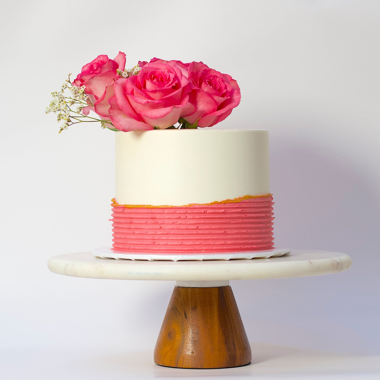 Flavor is extremely important to us, so to ensure that we are delivering the best for you, we make our cake components in-house; from the sponge, fillings and jam to frosting. We prioritize balance and harmonious flavors. Cakes are coated with silky Swiss Merengue Buttercream.